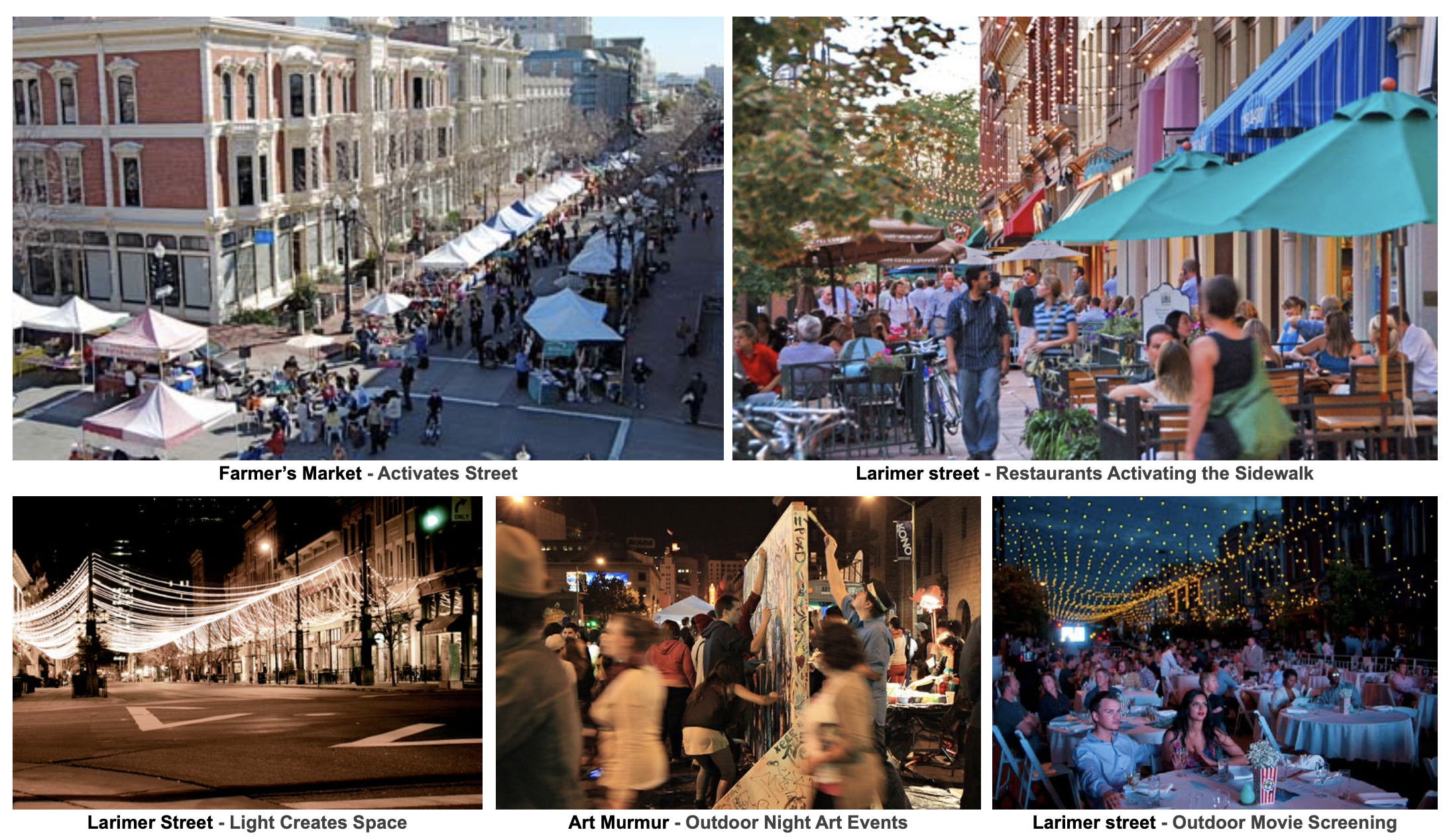 Shared economy & events – Activating vacant lots and streets through pop-ups, temporary retail, shared workspaces, and outdoor events, inspired by successful models like Proxy SF and Art Murmur.