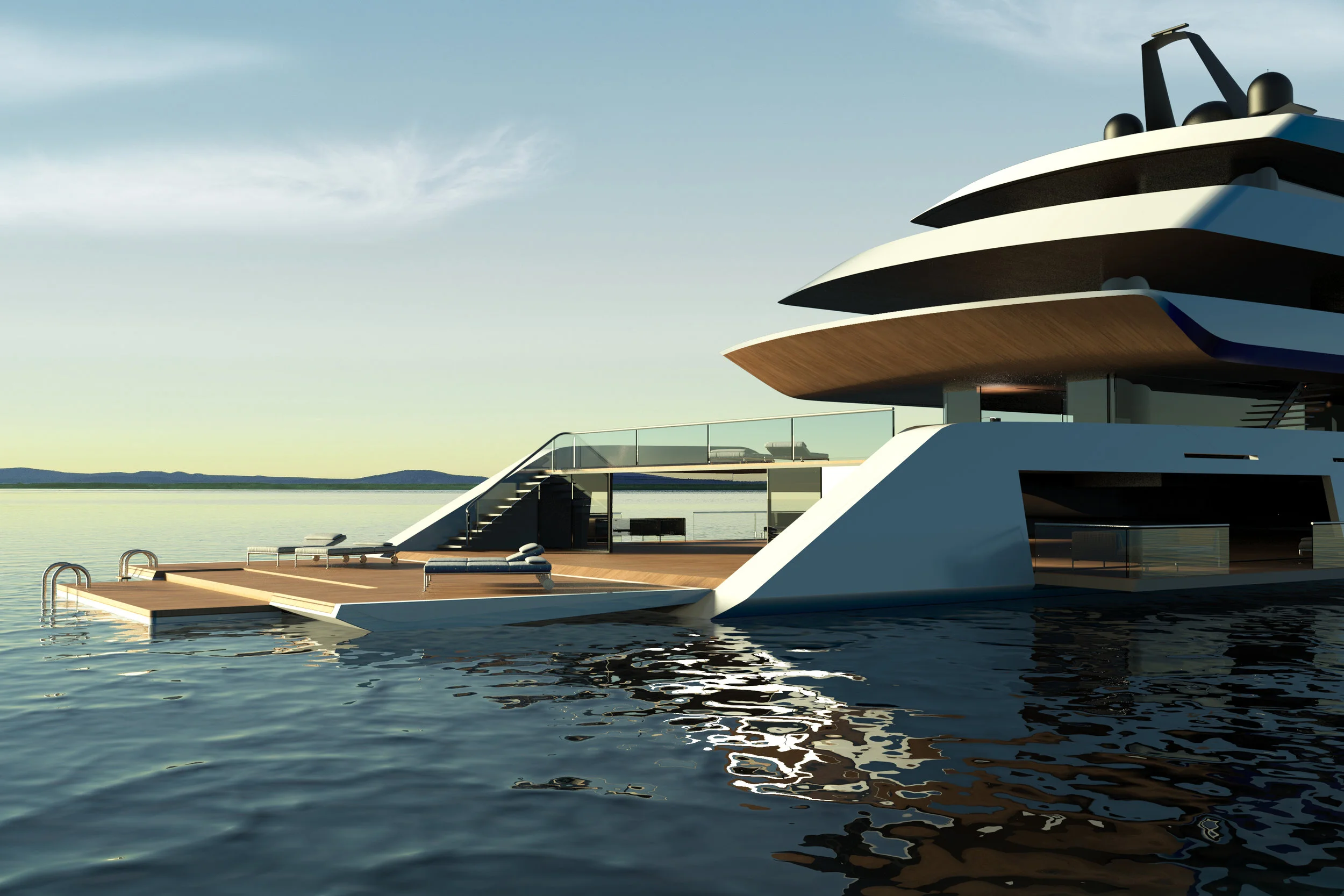 Reimagining the superyacht as an architectural landscape of lightness, openness, and play.