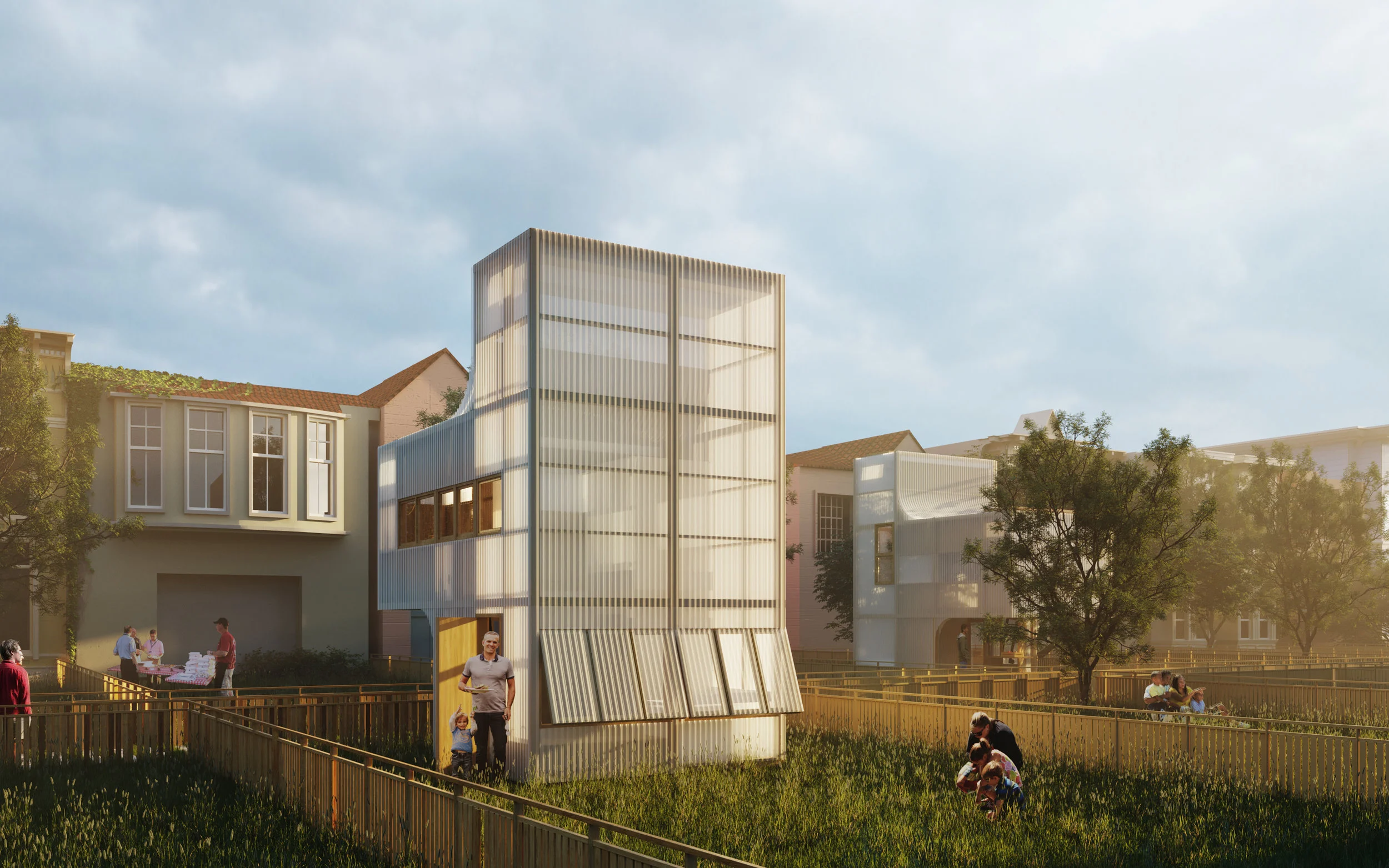 Revitalizing suburban neighborhoods through incremental density, shared resources, and community stewardship.