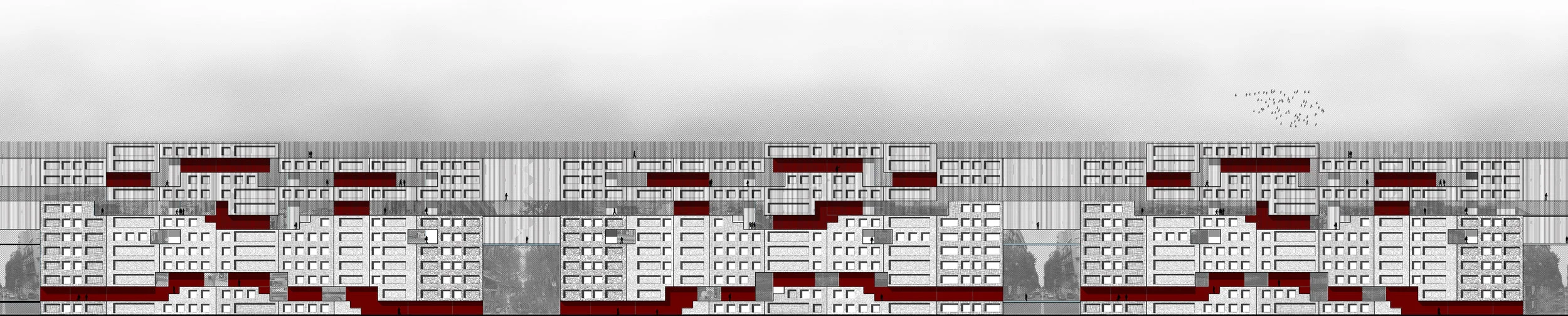 “Shifting Limits” looks at creating new continuous territories by removing existing city boundaries (neighborhoods, socioeconomic divides, broad avenues) through an architectural strategy of continuity, connectivity, and porosity.