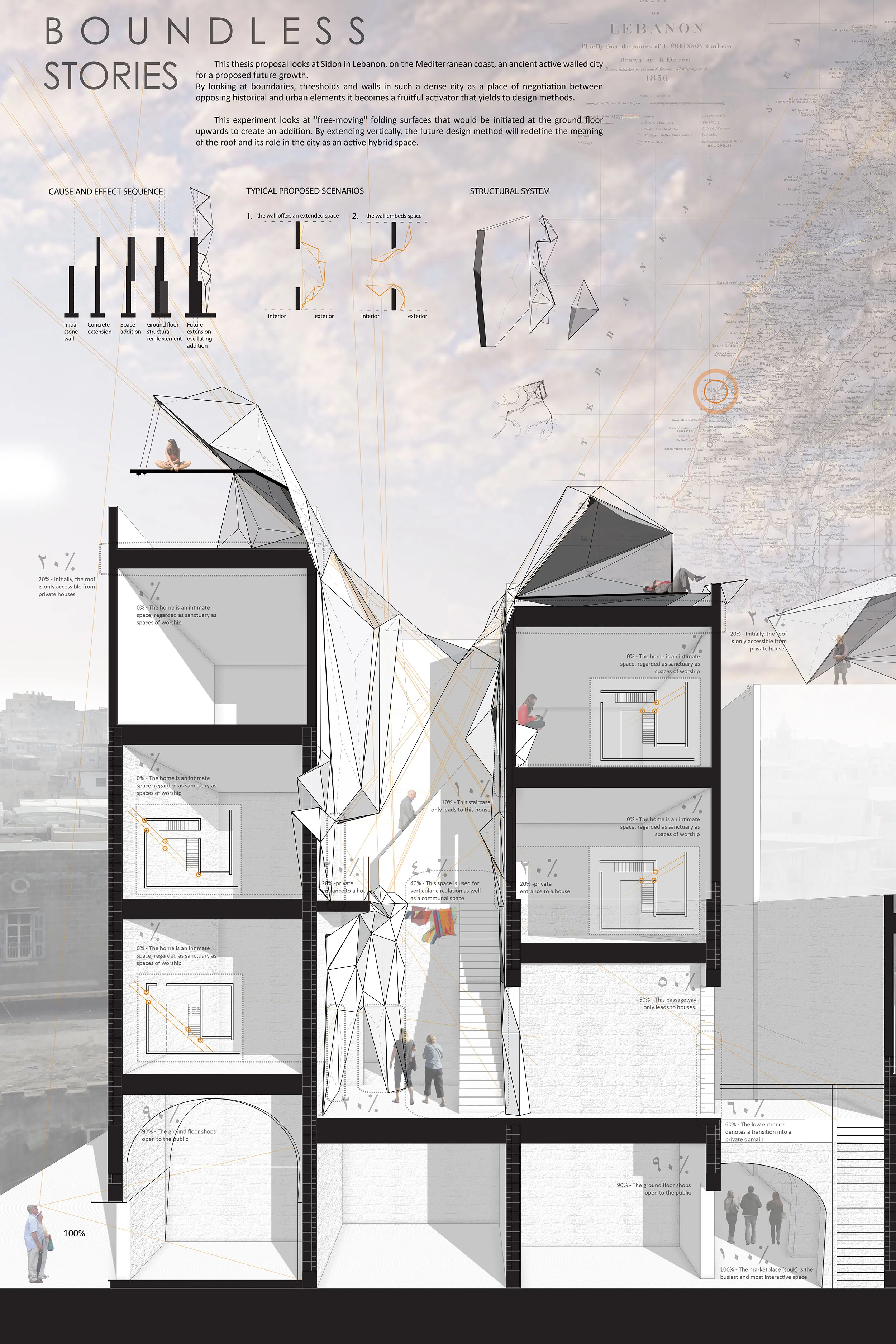 Sidon, a small ancient walled city on the Mediterranean coast of about 3 sq miles, has undergone a multitude of cultural influences and has always seen an expansion of population. At its current condition, the old city has about 80,000 inhabitants and is still growing due to influx of refugees. As a result, space is the main negotiator, making it the perfect site study for an urban design strategy of growth that simultaneously acts on the scale of the building and the city.
